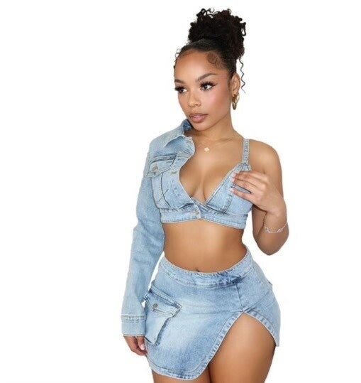2 piece Jean skirt set